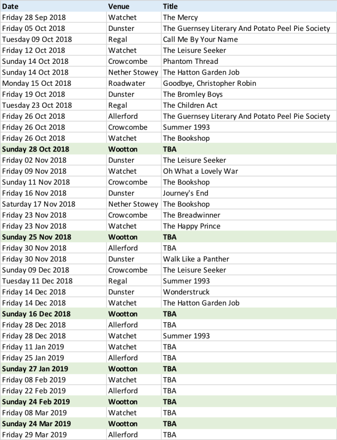 Here is what’s on at other local film clubs, and the proposed dates for the Wootton Season which have been booked by Lizzie Dunn.