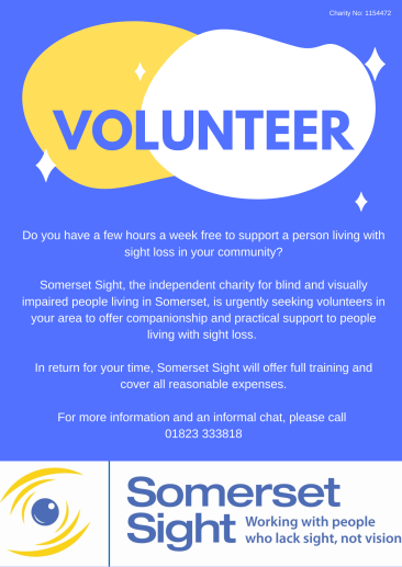 If you are sight-impaired, or are interested in volunteering with Somerset Sight, click here for more information: Somerset Sight
