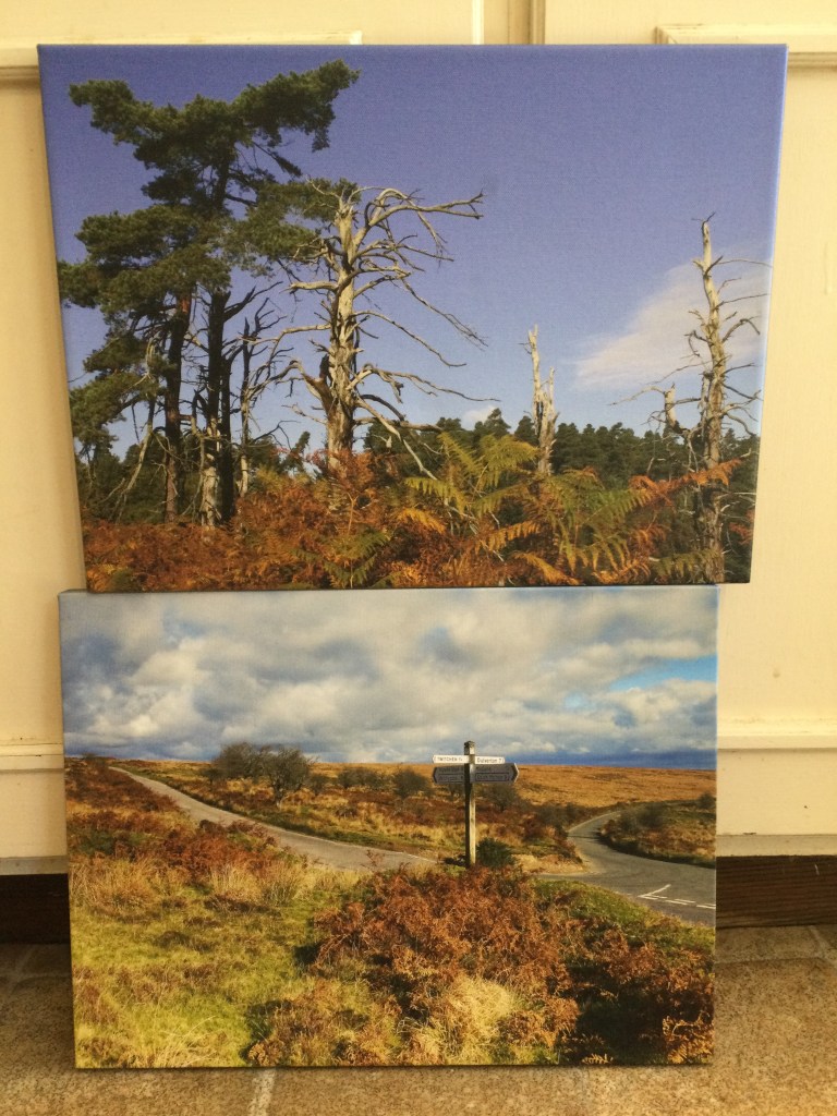 - Two of our photos on canvas. Above Holt Ball and Molland Moor. 16″ x 12″