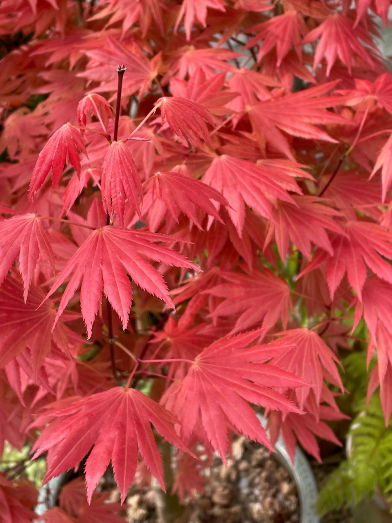 This acer is an upright form of Japanese maple with dissected foliage which emerges orange/red in spring and gradually becomes light green as the season changes to summer. It is 120cm (4ft) tall (without the pot), well-branched and healthy. This acer is best grown in partial shade; it will happily tolerate sun for half the day but prefers shade in the afternoon. We won’t have space for it in our new garden, hence this sale.
