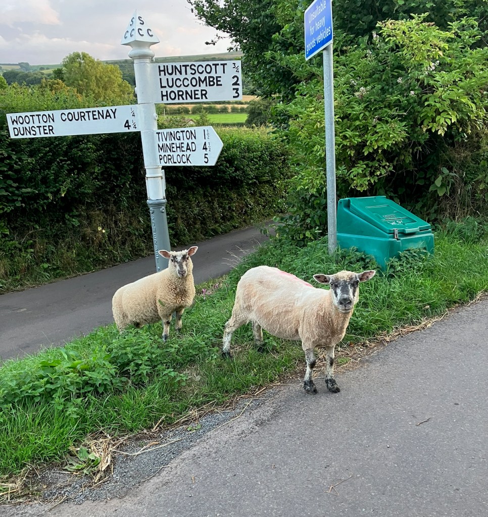 I don’t know whose sheep these are but they were heading up towards Tivington yesterday and in no mood to be held up. They came up the lane from Brockwell.