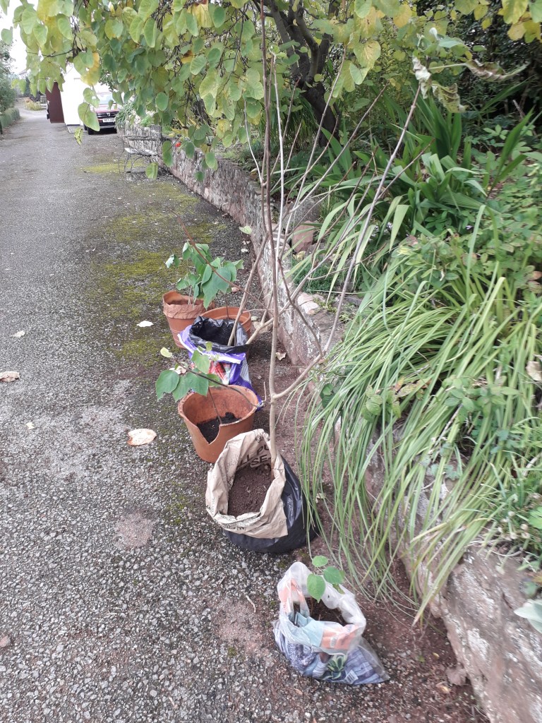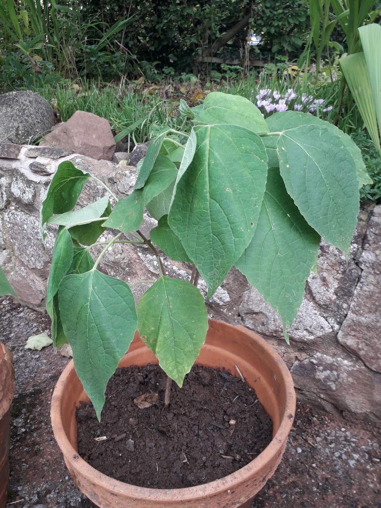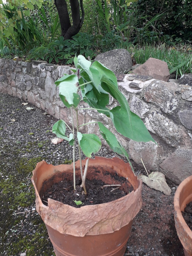 We have taken out a number of self-seeded daughters of our Paulownia tomentosa (foxglove tree, empress tree) here at Dunkery Pleck and have left them near the gate in various bags/ruined pots (we’re very short of receptacles!) for anyone who would like to take one. See photos below.