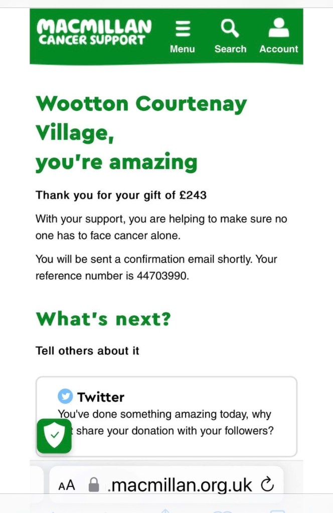 A significant sum of £243 was raised for Macmillan Cancer Support, who have already shown their gratitude (see photo below).