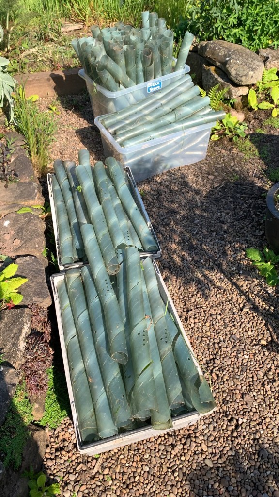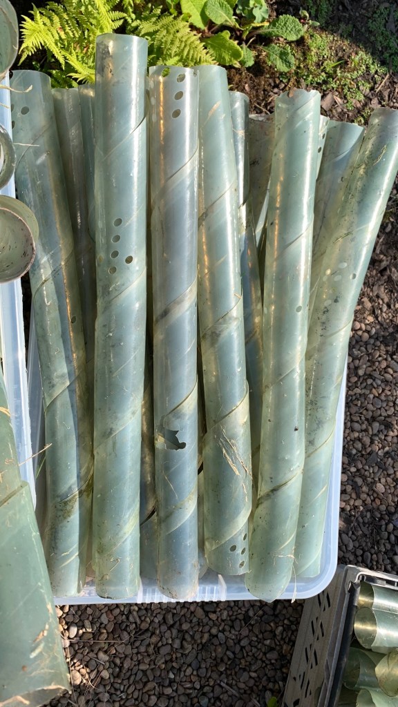 Are you planning to plant a hedge? We have approximately 200 clear, recycled plastic tree guards (the spiral type, with small ventilation holes), 56cm long, which have been protecting a new hedge here at Crockford for the past 2 years, but which are still in good, useable condition. See photo below. Free to anyone who can make use of them. Please reply to this email if you’re interested.