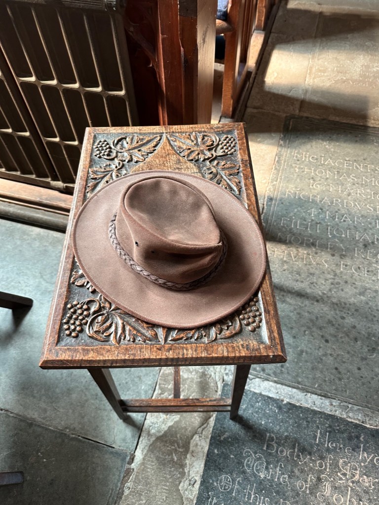 Hat still in church waiting for collection.