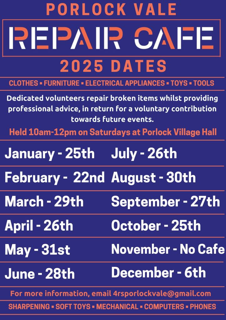 The Repair Cafe returns to Porlock this month, for all your household repairs.