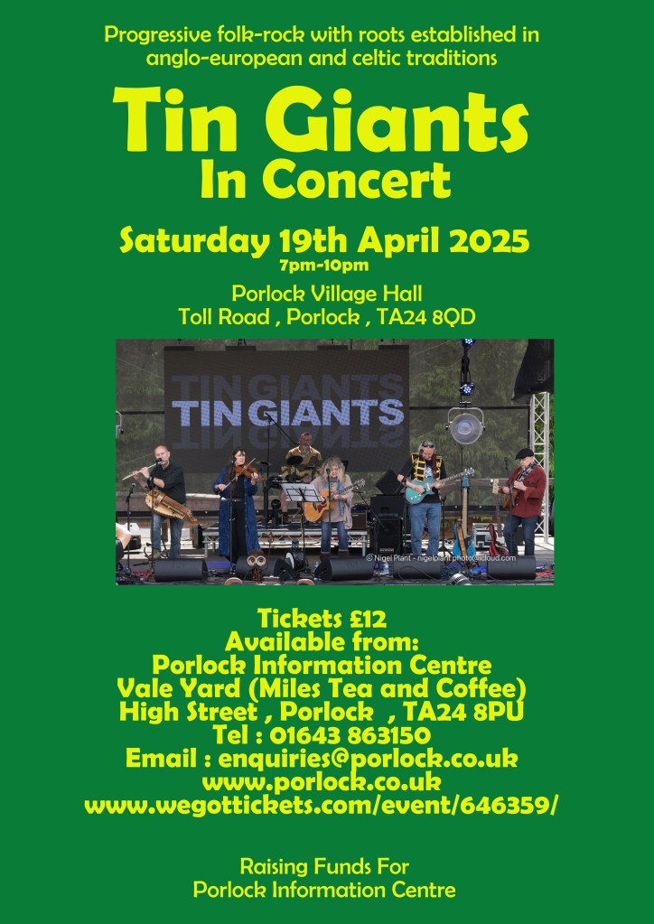 Porlock is in for a treat when the wonderful Tin Giants return to perform at Porlock Village Hall on Saturday 19th April at 7.00pm, raising funds for Porlock Information Centre (see poster, below).