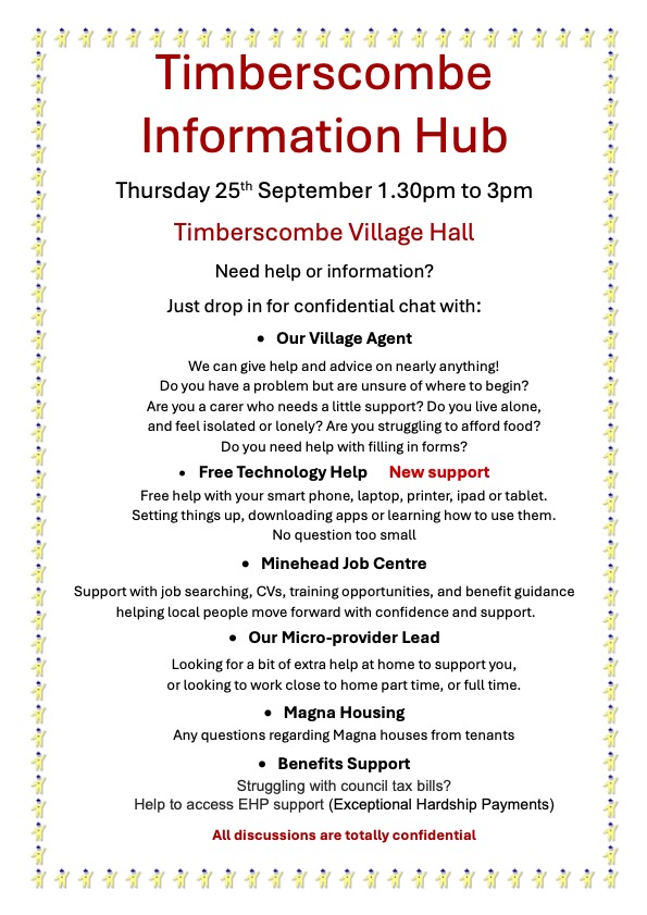 Residents of Wootton Courtenay are welcome to attend the new Information Hub in Timberscombe Village Hall (see poster below).