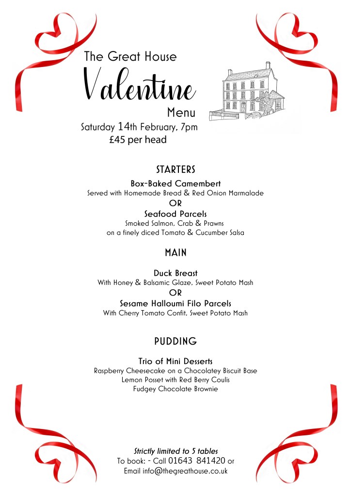 Valentine’s Menu at The Great House Share this: Email a link to a friend (Opens in new window) Email Share on Facebook (Opens in new window) Facebook Print (Opens in new window) Print More Share on X (Opens in new window) X Share on WhatsApp (Opens in new window) WhatsApp Share on Pinterest (Opens in new window) Pinterest Share on LinkedIn (Opens in new window) LinkedIn Share on Reddit (Opens in new window) Reddit Share on Pocket (Opens in new window) Pocket Related Published by Marion Jay View all posts by Marion Jay