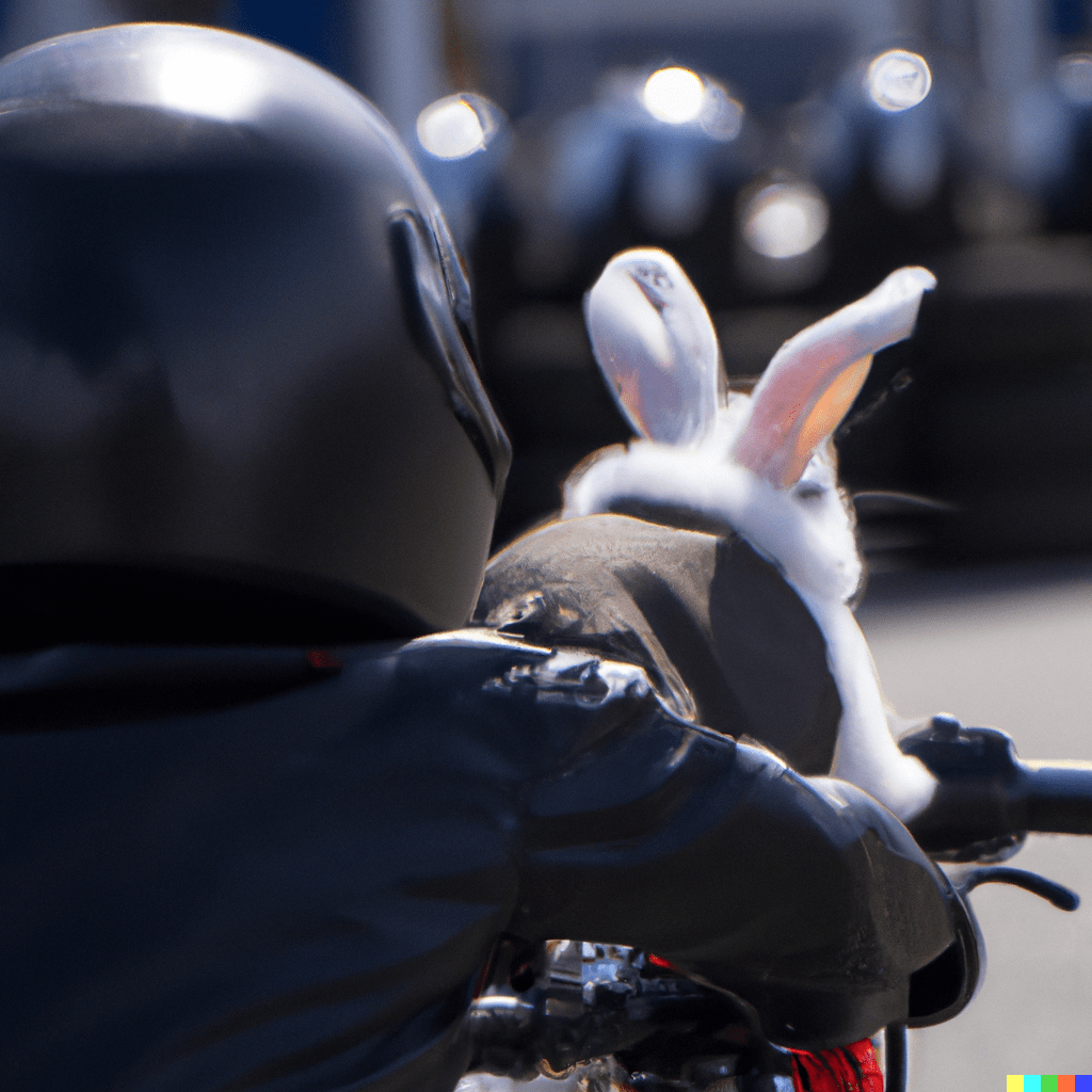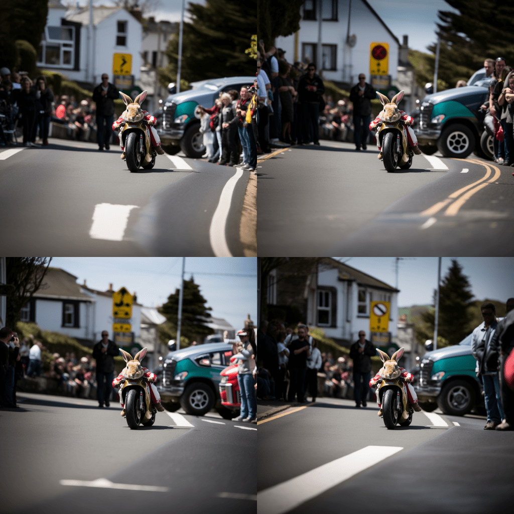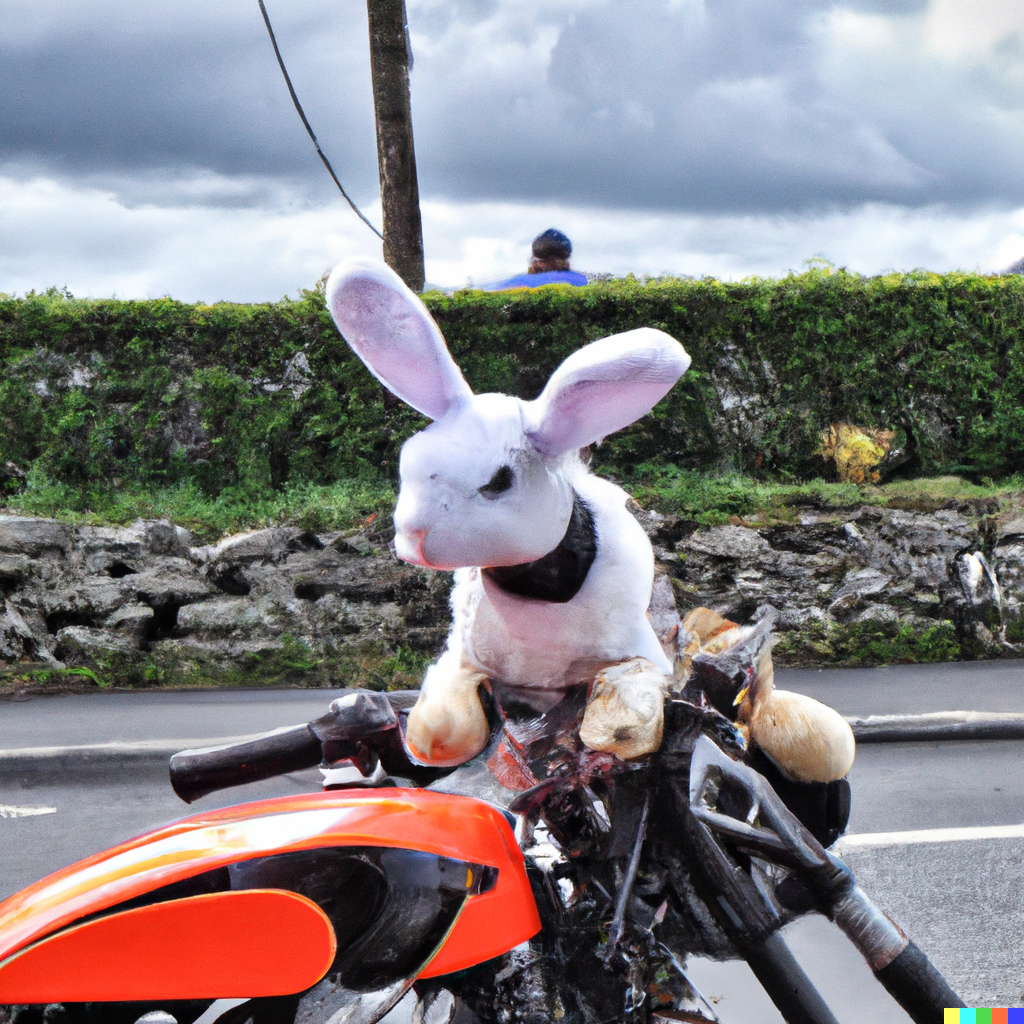 A Rabbit on a Motorbike at the Isle of Man TT Races (DALL-E)