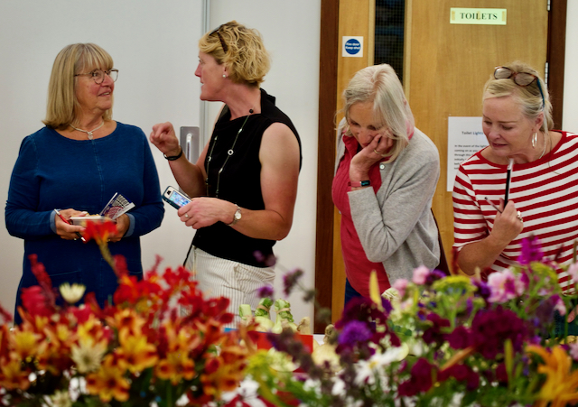 Divinely scented sweet peas (and Simon) (GG)GGGGGGGGRo, Kate, Eddie, Nigel, Ingrid, Patrick & Dee (GG)Marion with her agapanthus (GG)Sarah and teacup flowers (GG)Nigel and Alison (GG)GGSarah and her mum, Margaret (GG)Rose and Rob (GG)Mark co-ordinated the Photography Classes and the People’s Choice (GG)Liz and Helen ran the raffle (GG)The refreshments team (BH)Jeremy, Simon and Nigel (BH)Liz, Kate, Alison and Helen (BH)Tony and Alyson (BH)Heidrun checks out the tomatoes (BH)Alan admires the herbs (BH)BHDaphne and Linda (BH)Richard and Nigel (BH)Heidrun and Margaret BHLinda and Rose (BH)BHBHFlower Show Chair Veronica’s speech (BH)Rob receives one of several cups (BH)BHBHBHBHA farewell gift for Veronica…(BH)…and a bouquet of flowers (BH)Eddie gets the auction underway (BH)