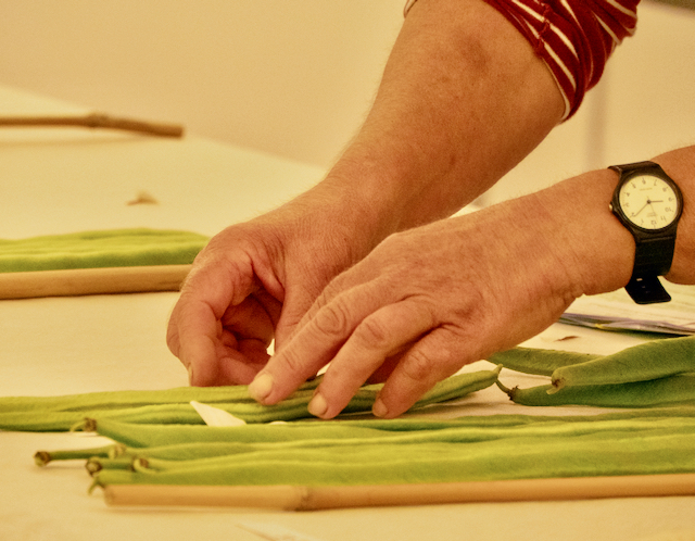 (GG)The trophies (BH)Exhibitors begin to lay out their displays (BH)BHPhilip & Roz (IP)Rob creates his exhibit (IP)Belinda arranges her runner beans (IP)IPGGSimon places a vase of flowers (IP)IPThe judging begins (GG)GGVegetable judge Jeff Cox with steward Shelley (GG)GG